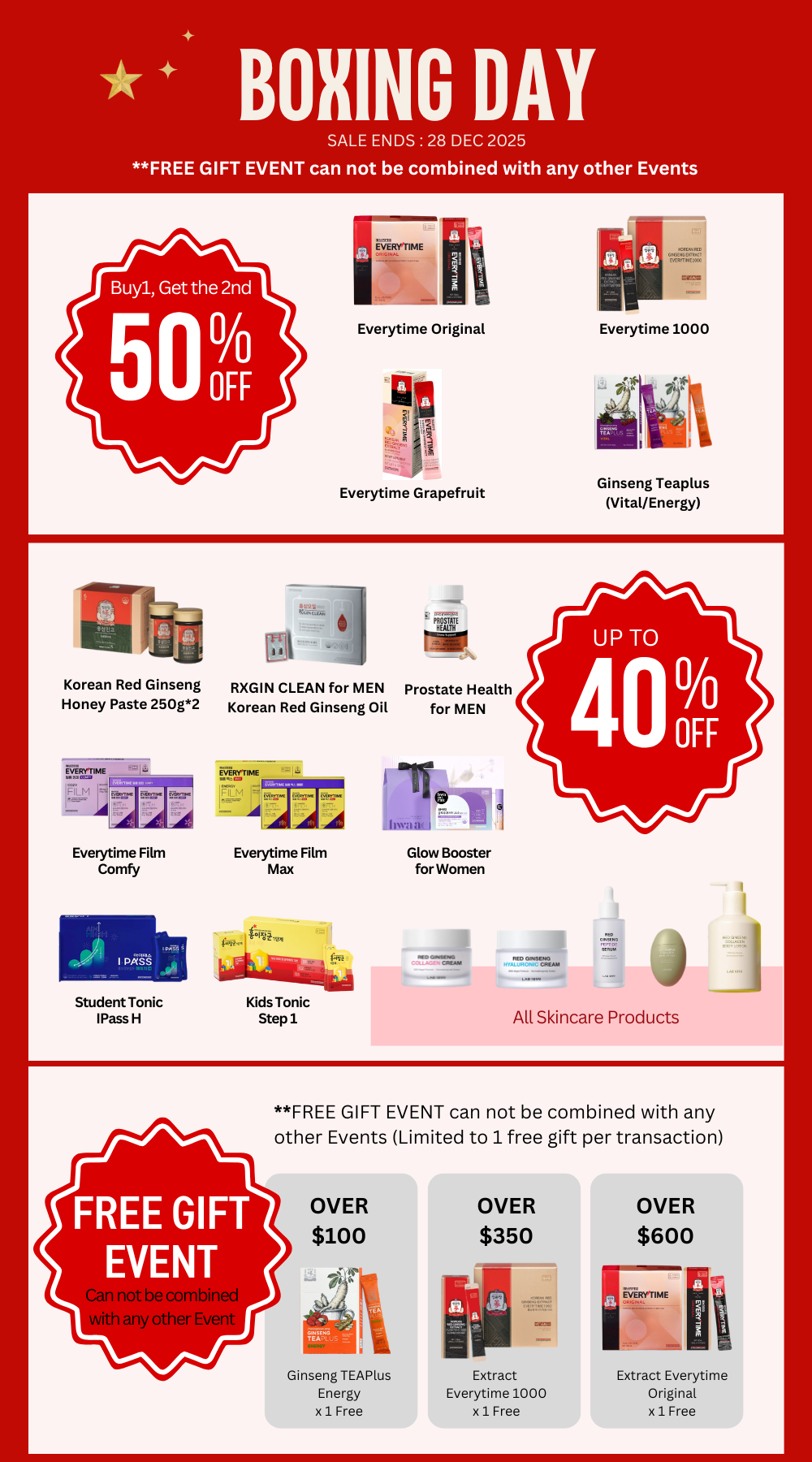 Expiry Date : 21 MAR 2026Made from the top 0.5% Cheonsam (Heaven Grade) roots, handpicked by the Korean Red Ginseng master as the main ingredient, and formulated with precious adjuncts such as deer antler, Korean angelica roots, cornus fruit, and royal jelly, this is a premium Korean Red Ginseng pro..